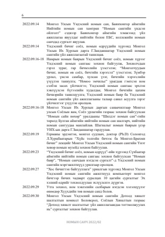 %u041d%u041e%u041c%u042b%u041d %u0421%u0410%u041d%u0427 2022/0262022.09.14 %u041c%u043e%u043d%u0433%u043e%u043b %u0423%u043b%u0441%u044b%u043d %u04ae%u043d%u0434%u044d%u0441%u043d%u0438%u0439 %u043d%u043e%u043c%u044b%u043d %u0441%u0430%u043d, %u0411%u0430%u044f%u043d%u0445%u043e%u043d%u0433%u043e%u0440 %u0430%u0439%u043c%u0433%u0438%u0439%u043d %u041d%u0438%u0439%u0442%u0438%u0439%u043d %u043d%u043e%u043c%u044b%u043d %u0441%u0430%u043d %u0445%u0430%u043c%u0442%u0440%u0430%u043d %u201c%u041d%u043e%u043c%u044b%u043d %u0441%u0430%u043d%u0433%u0438%u0439%u043d %u04af%u043d%u0434%u0441%u044d%u043d %u043e%u0439%u043b%u0433%u043e%u043b%u0442%u201d %u0441%u044d%u0434%u0432%u044d%u044d%u0440 %u0411%u0430%u044f%u043d%u0445%u043e%u043d%u0433%u043e%u0440 %u0430%u0439%u043c%u0433%u0438%u0439%u043d %u0445%u044d%u043c%u0436%u044d%u044d%u043d%u0434 %u04af%u0439%u043b %u0430%u0436%u0438%u043b%u043b%u0430%u0433%u0430%u0430 %u044f%u0432%u0443%u0443%u043b%u0434%u0430%u0433 %u043d%u0438%u0439%u0442%u0438%u0439%u043d %u0431%u043e%u043b%u043e%u043d %u0415%u0411%u0421, %u043a%u043e%u043b%u043b%u0435%u0436%u0438%u0439%u043d %u043d%u043e%u043c%u044b%u043d %u0441%u0430%u043d%u0447%u0434%u0430%u0434 %u0441%u0443%u0440%u0433%u0430%u043b%u0442 %u044f%u0432%u0443%u0443%u043b%u0430%u0432. 2022.09.14 %u04ae%u043d%u0434%u044d%u0441%u043d%u0438%u0439 %u0431%u0438%u0447%u0438%u0433 %u0441%u043e%u0451%u043b, %u043d%u043e%u043c%u044b%u043d %u04e9%u0434%u0440%u04af%u04af%u0434%u0438%u0439%u043d %u0445%u04af%u0440%u044d%u044d%u043d%u0434 %u041c%u043e%u043d%u0433%u043e%u043b %u0423%u043b%u0441%u044b%u043d %u0418%u0445 %u0425%u0443%u0440%u043b%u044b%u043d %u0434%u0430%u0440%u0433%u0430 %u0413.%u0417%u0430%u043d%u0434%u0430%u043d%u0448%u0430%u0442%u0430%u0440 %u04ae%u043d%u0434%u044d%u0441%u043d%u0438%u0439 %u043d%u043e%u043c%u044b%u043d %u0441%u0430%u043d%u0433%u0438%u0439%u043d %u04af%u0439%u043b %u0430%u0436%u0438%u043b%u043b%u0430%u0433%u0430%u0430%u0442%u0430%u0439 %u0442%u0430%u043d%u0438%u043b%u0446%u0430%u0432. 2022.09.16-18 %u041d%u0430%u043c%u0440%u044b%u043d %u043d%u043e%u043c%u044b%u043d %u0431%u0430%u044f%u0440%u044b%u043d %u04ae%u043d%u0434%u044d%u0441%u043d%u0438%u0439 %u0431%u0438%u0447%u0438%u0433 %u0441%u043e%u0451%u043b, %u043d%u043e%u043c%u044b%u043d %u0445%u04af%u0440%u044d%u044d%u0433 %u04ae%u043d%u0434%u044d%u0441%u043d%u0438%u0439 %u043d%u043e%u043c%u044b%u043d %u0441%u0430%u043d%u0433%u0430%u0430%u0441 %u0437%u043e%u0445%u0438%u043e%u043d %u0431%u0430%u0439%u0433%u0443%u0443%u043b%u0436, %u0417%u043e%u0445%u0438%u043e%u043b%u0447%u0434%u044b%u043d %u0433%u044d%u0440%u044d%u043b %u0437%u0443%u0440%u0430%u0433, %u0433%u0430%u0440 %u0431%u0438%u0447%u043c%u044d%u043b%u0438%u0439%u043d %u04af%u0437%u044d%u0441%u0433%u044d%u043b%u044d%u043d; %u201c%u041c%u043e%u043d%u0433%u043e%u043b%u0447%u0443%u0443%u0434%u044b%u043d %u0431%u0438%u0447%u0438%u0433, %u043d%u043e%u043c%u044b%u043d %u04e9%u0432 %u0441%u043e%u0451%u043b, %u0431%u0438%u0447%u0433%u0438%u0439%u043d %u0445%u044d%u0440%u044d%u0433%u0441%u044d%u043b%u201d %u04af%u0437%u044d%u0441%u0433%u044d%u043b%u044d%u043d; %u0417%u04af%u043c%u0431%u044d%u0440 %u0443%u0440%u043b%u0430%u043b, %u04af%u043d%u0441%u044d%u043d %u0441%u0430%u043c%u0431%u0430%u0440, %u0445%u0443%u043b%u0441%u0430%u043d %u04af%u0437%u044d%u0433, %u0431%u0438%u0447%u0433%u0438%u0439%u043d %u0445%u044d%u0440%u044d%u0433%u0441%u043b%u0438%u0439%u043d %u04af%u0437%u04af%u04af%u043b%u044d%u043d %u0442%u0430%u043d%u0438%u0443%u043b%u0433%u0430; %u201c%u041d%u043e%u043c%u043e%u043e %u044d%u043c%u0447%u0438%u043b%u044c%u0435%u201d %u0443%u0440%u0430%u0433%u0434%u0430%u0436 %u0433%u044d%u043c%u0442%u0441%u044d%u043d %u043d%u043e%u043c %u0441%u044d%u043b%u0431%u044d%u043d %u0437%u0430%u0441%u0430%u0445 %u04af%u0439%u043b%u0447%u0438%u043b%u0433%u044d%u044d; %u04ae%u043d%u0434%u044d%u0441%u043d%u0438%u0439 %u043d%u043e%u043c%u044b%u043d %u0441%u0430%u043d%u0433%u0430%u0430%u0441 %u044d%u0440%u0445%u043b%u044d%u043d %u0445%u044d%u0432%u043b%u04af%u04af%u043b%u0441%u044d%u043d %u0431%u04af%u0442%u044d%u044d%u043b%u0438%u0439%u043d %u0445%u0443%u0434%u0430%u043b%u0434%u0430%u0430; %u041c%u043e%u043d%u0433%u043e%u043b %u0431%u0438%u0447%u0433%u0438%u0439%u043d %u0446%u0430%u0445%u0438%u043c %u0431%u0438%u0447%u0432%u044d%u0440%u0438%u0439%u043d %u0442%u0430%u043d%u0438%u043b%u0446%u0443%u0443%u043b%u0433%u0430; %u04ae%u043d%u0434%u044d%u0441%u043d%u0438%u0439 %u043d%u043e%u043c%u044b%u043d %u0431%u0430%u044f%u0440 %u0431%u0430 %u04ae%u043d%u0434%u044d%u0441%u043d%u0438%u0439 %u043d%u043e%u043c%u044b%u043d %u0441%u0430%u043d%u0433%u0438%u0439%u043d %u04af%u0439%u043b %u0430%u0436%u0438%u043b%u043b%u0430%u0433%u0430%u0430%u043d%u044b %u0442%u0430%u043b%u0430%u0430%u0440 %u0441%u0430%u043d%u0430%u043b %u0430%u0441%u0443%u0443%u043b%u0433%u0430 %u0437%u044d%u0440%u044d%u0433 %u04af%u0439%u043b%u0447%u0438%u043b%u0433%u044d%u044d%u0433 %u04af%u0437%u04af%u04af%u043b%u044d%u043d %u043e%u0440%u043e%u043b%u0446%u043e%u0432. 2022.09.16-18 %u041c%u043e%u043d%u0433%u043e%u043b %u0423%u043b%u0441%u044b%u043d %u0418%u0445 %u0425%u0443%u0440%u043b%u044b%u043d %u0434%u0430%u0440%u0433%u044b%u043d %u0441%u0430%u043d%u0430%u0430%u0447%u0438%u043b%u0433%u0430%u0430%u0440 %u041c%u043e%u043d%u0433%u043e%u043b %u0443%u043b%u0441%u044b%u043d %u0421%u043e%u0451%u043b%u044b%u043d %u044f%u0430%u043c, %u0421%u043e%u0451%u043b %u0443%u0440%u043b%u0430%u0433%u0438%u0439%u043d %u0433%u0430%u0437%u0440%u0430%u0430%u0441 %u0437%u043e%u0445%u0438%u043e%u043d %u0431%u0430%u0439%u0433%u0443%u0443%u043b%u0441%u0430%u043d %u201c%u041d%u043e%u043c%u044b%u043d %u0441%u0430%u0439%u043d %u043d%u04e9%u0445%u04e9%u0440%u201d %u0443%u0440%u0430%u043b%u0434%u0430%u0430%u043d%u044b %u201c%u0428%u0438%u043b%u0434%u044d%u0433 %u043d%u043e%u043c%u044b%u043d %u0441%u0430%u043d%u201d-%u0433%u0438%u0439%u043d %u0442%u04e9%u0440%u04e9%u043b%u0434 %u0411%u0443%u043b%u0433%u0430%u043d %u0430%u0439%u043c%u0433%u0438%u0439%u043d %u043d%u0438%u0439%u0442%u043